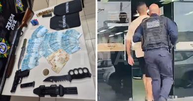 Uma pistola, rádio de comunicação e drogas foram apreendidos. O caso será investigado pela Delegacia Especializada.