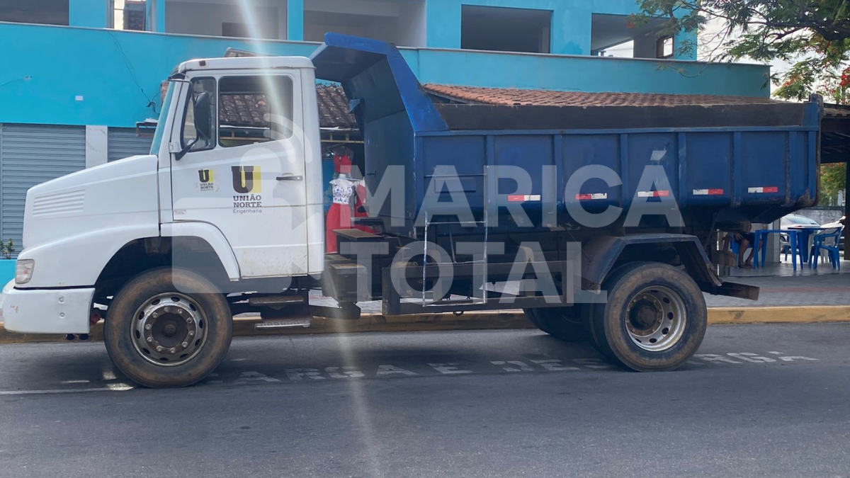 Um caminhão que estaria envolvido no roubo de manilhas pertencentes à Prefeitura de Maricá foi apreendido por policiais militares na tarde desta segunda-feira (08), no bairro de Inoã. A ação ocorreu após equipes receberem um informe do Siosp sobre a possível participação do veículo no crime.