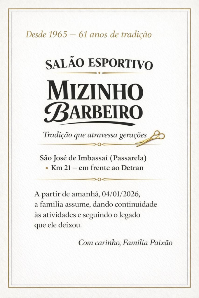 A tradicional Barbearia do Mizinho Barbeiro, referência histórica em São José de Imbassaí, entra em um novo capítulo de sua história. Após décadas marcadas por atendimento, amizade e muitas histórias compartilhadas, o espaço será oficialmente reaberto pela família, mantendo vivo o legado deixado por Mizinho.