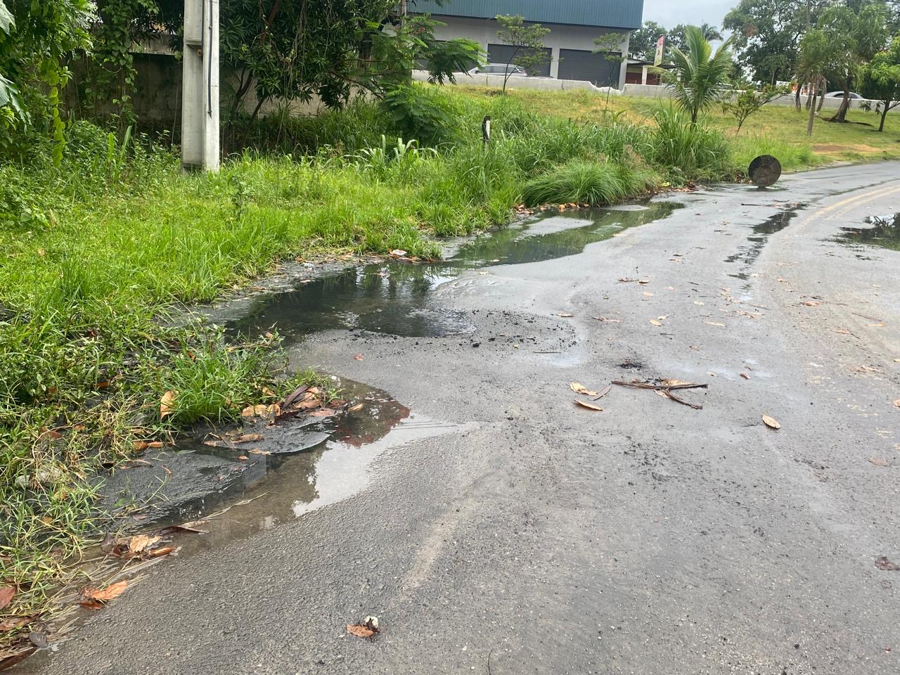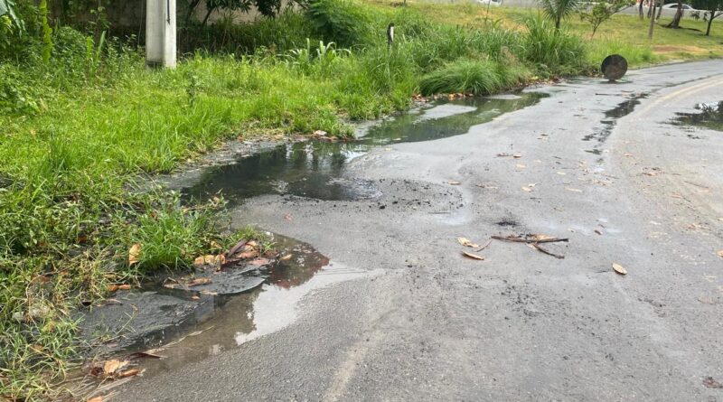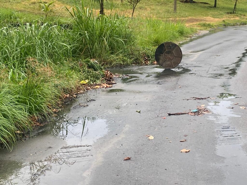 De acordo com relatos, o esgoto está transbordando e alagando a via, afetando todos que precisam passar pelo local. Mesmo sendo uma rua asfaltada, a falta de manutenção é visível: há grande quantidade de mato acumulado nas laterais, o que contribui para o empoçamento da água e agrava ainda mais a situação.